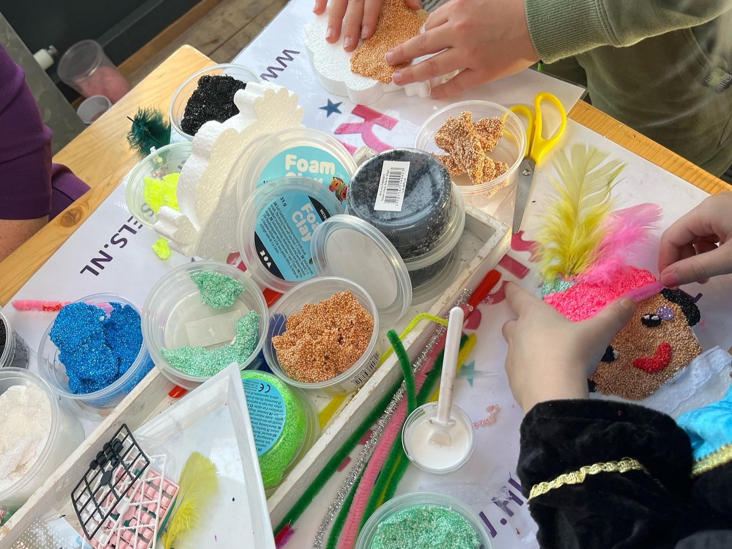 Daar hoef je tijdens onze workshops met Foam klei niet veel moeite voor te doen. Het versieren van de ondergronden met Foam klei is namelijk zo easy the peacy dat deze workshop geschikt is voor iedereen! Foam klei is al jaren een van onze paradepaardjes onder workshops en stiekem ook one of our favorites! Foam klei is een kleisoort dat bestaat uit hele kleine balletjes. Doordat de klei lekker soepel is en plakt, is het heel makkelijk om de klei op verschillende materialen te plakken. Doordat de Foam klei al op de ondergrond plakt heb je geen lijm nodig. Dus het wordt “harstikke mooi en dat zonder zooi”… De klei hoeft ook niet afgebakken te worden in de oven, het is een zelfhardende klei. Het coole van het knutselen met Foam klei is dat je door het versieren met klei heel eenvoudig een super mooie knutsel werkt. Kortom de knutsel lukt altijd en heeft ook de grote “wow factor” heb ik dit echt helemaal zelf gemaakt?